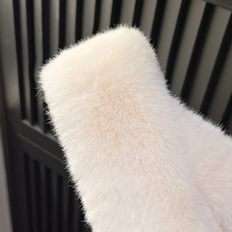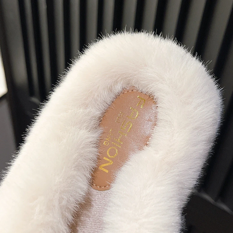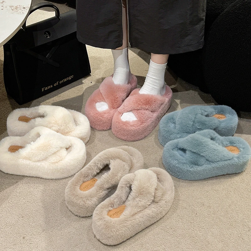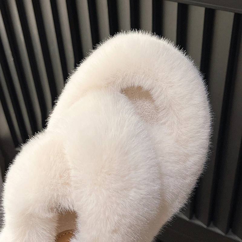 Fashion Vegan Open Toe Mule Fluffy Warm Fur House Slippers for Women Cross Furry 7cm High Platform Candy Color Fur Slipper