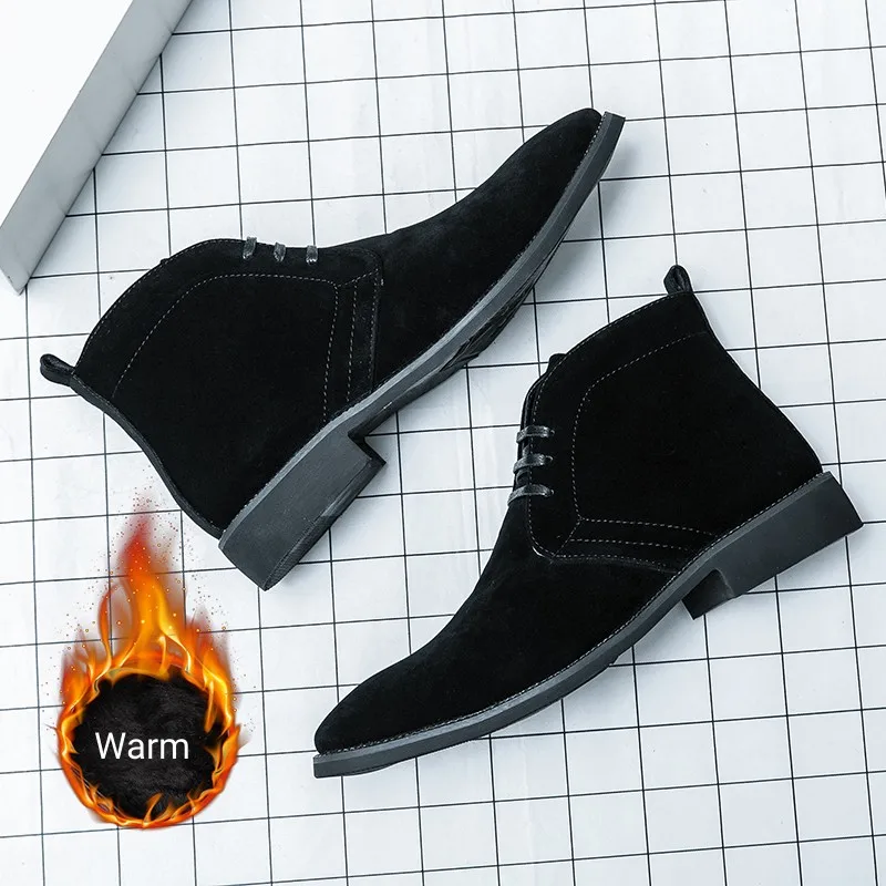 Latest Men Suede Leather Pointed Toe Warm Plush Winter Boots Gentlemen Party Fur Boots
