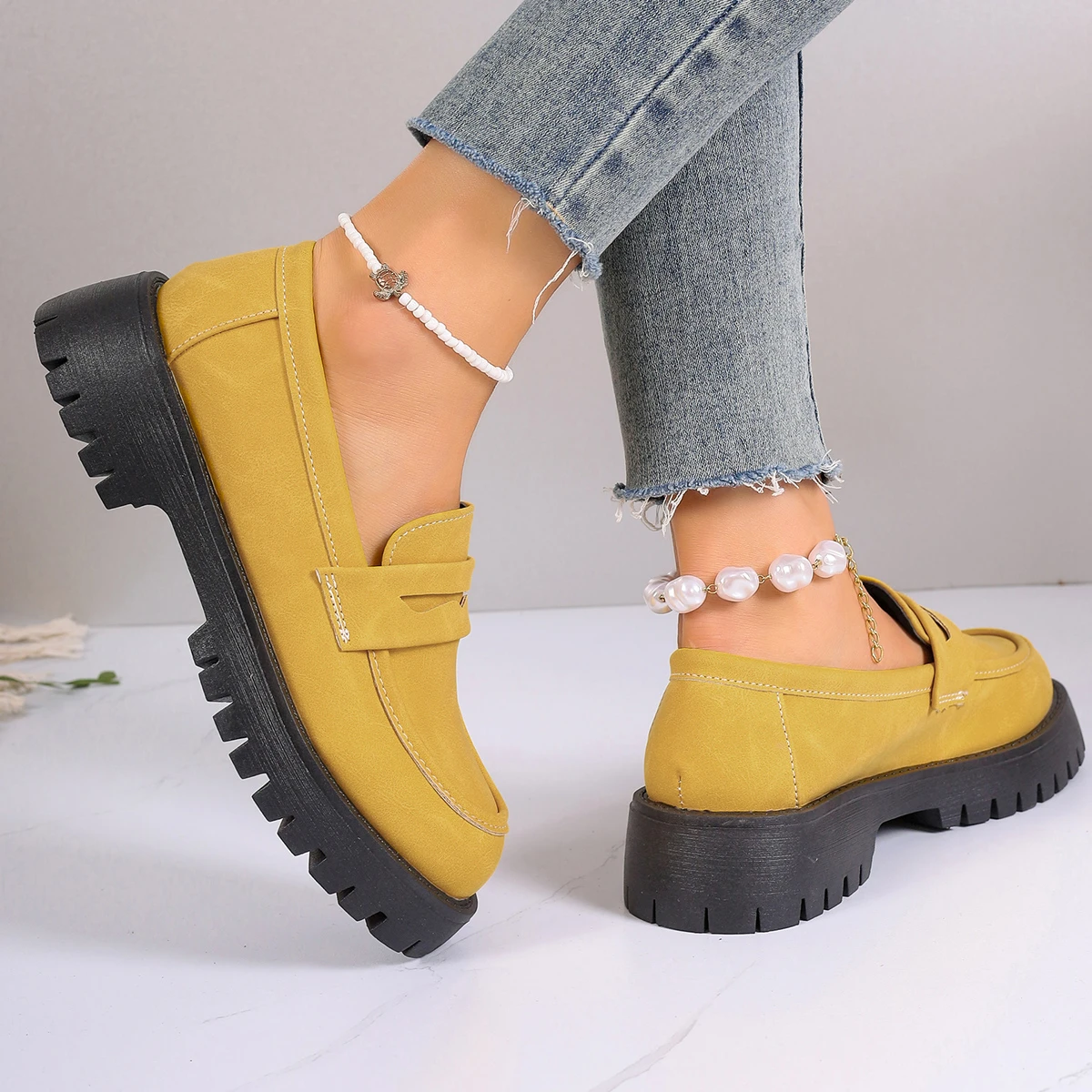 Custom Logo Comfortable Plus Size 43 Women Loafers Shoes Slip on Moccasins Shoes Women Round-head Chunky Heel Dress Shoes