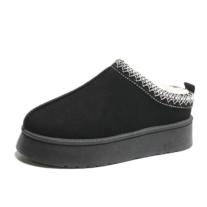 Classical Ladies Winter Suede Leather Bootie Shoes Non Slip Large Women Platform Warm Cotton Fashion Snow Boots