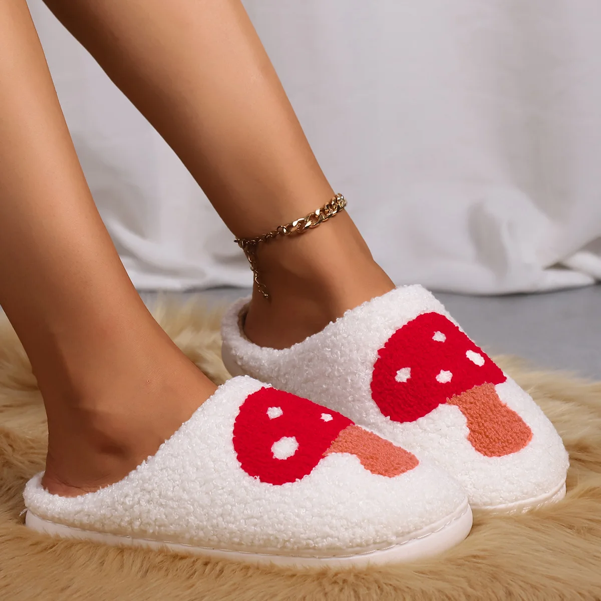 Cute Plush Slides Warm Slipper Loafers Plush Slipper Comfortable Custom Logo Furry Winter Unisex Furry Pink Mushroom Slipper