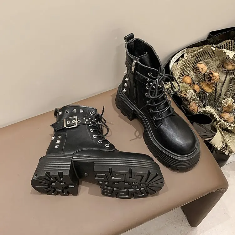 Custom Logo & Designs Women's Fashion Trend Rivet Black Ankle Boots Shoes
