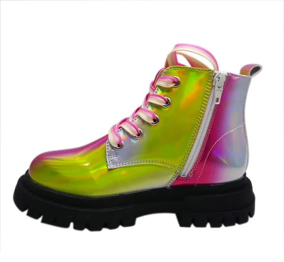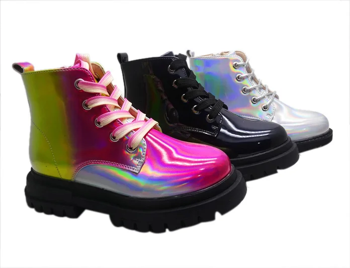 BSCI/Sedex/Smeta/GRS/HIGG Factory Wholesale Custom Classic Designs Kids Girl Working Boots Boy Shiny Laser Ankle Student Boots