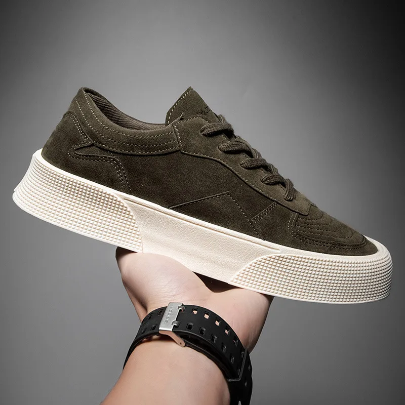 Men Suede Leather Board Shoes Trendy Men Fashion Soft Leather Men Casual Sneakers All Match Loafers Bags Retro Bla