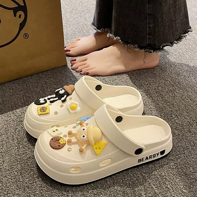 New Summer Women's EVA Garden Shoes With Cartoon Accessories Anti-Odor Slip-Resistant Two-Way Wear Indoor Outdoor Sandals