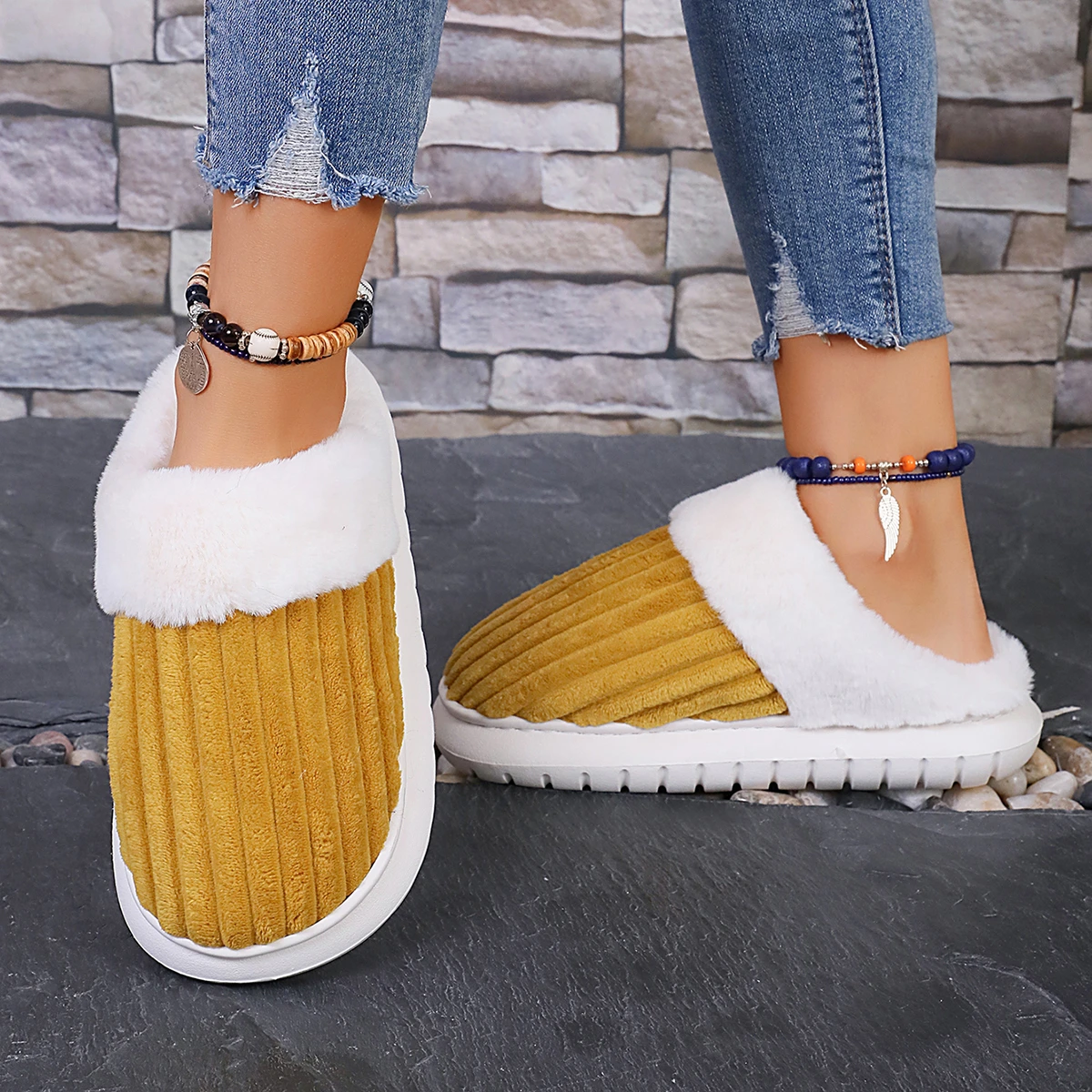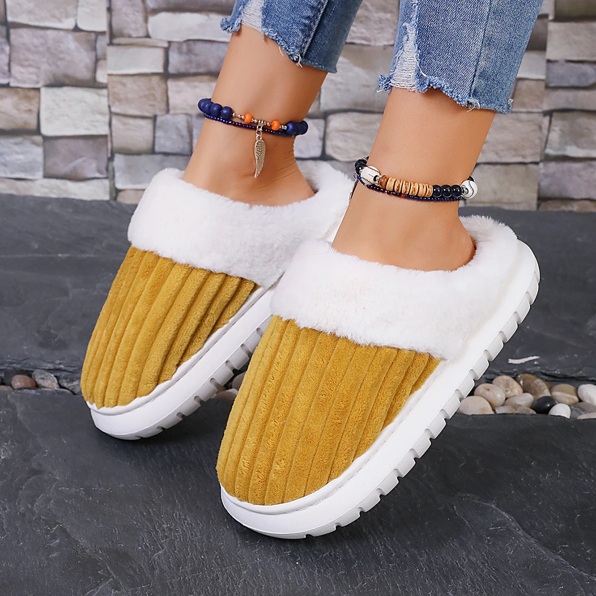 Custom Logo Bedroom Slippers for Women Keep Warm Slides Home Slippers Soft Slip on Anti-Skid Sole Home Slipper for Ladies