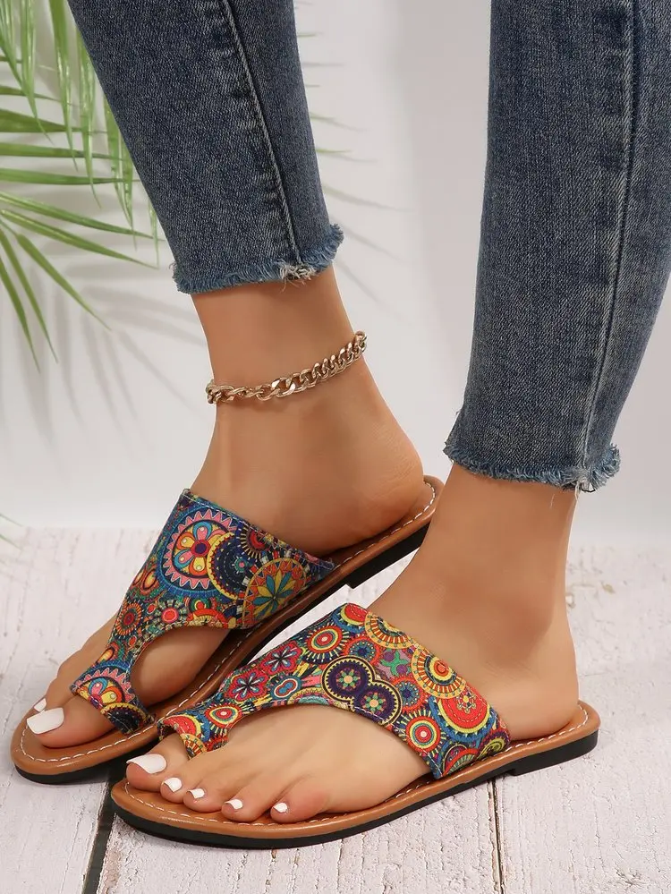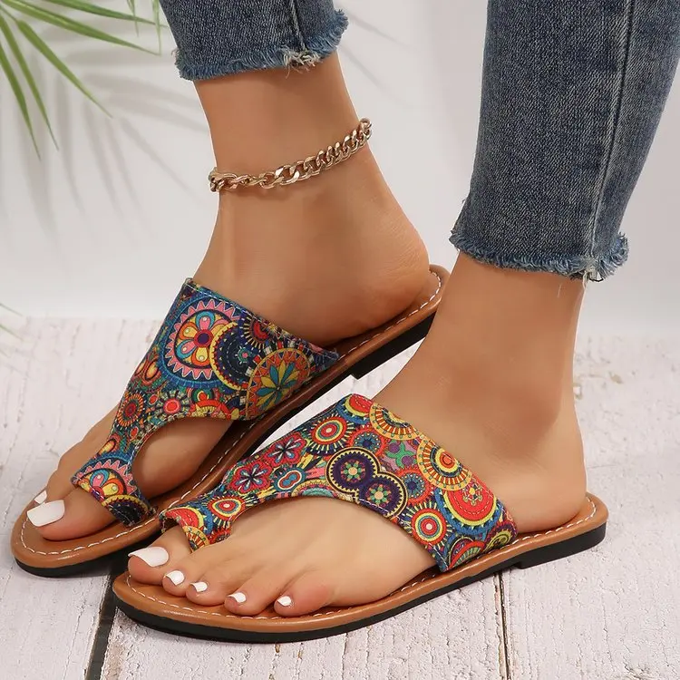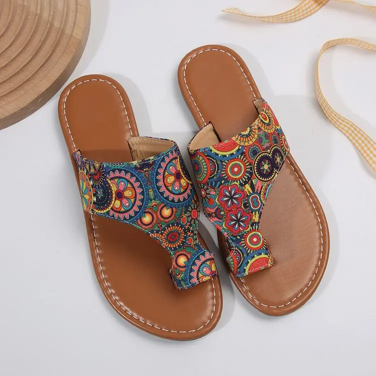 Wholesale Custom Logo Summer Beach Flat Slippers Women National Tradition Slides Slipper for Lady
