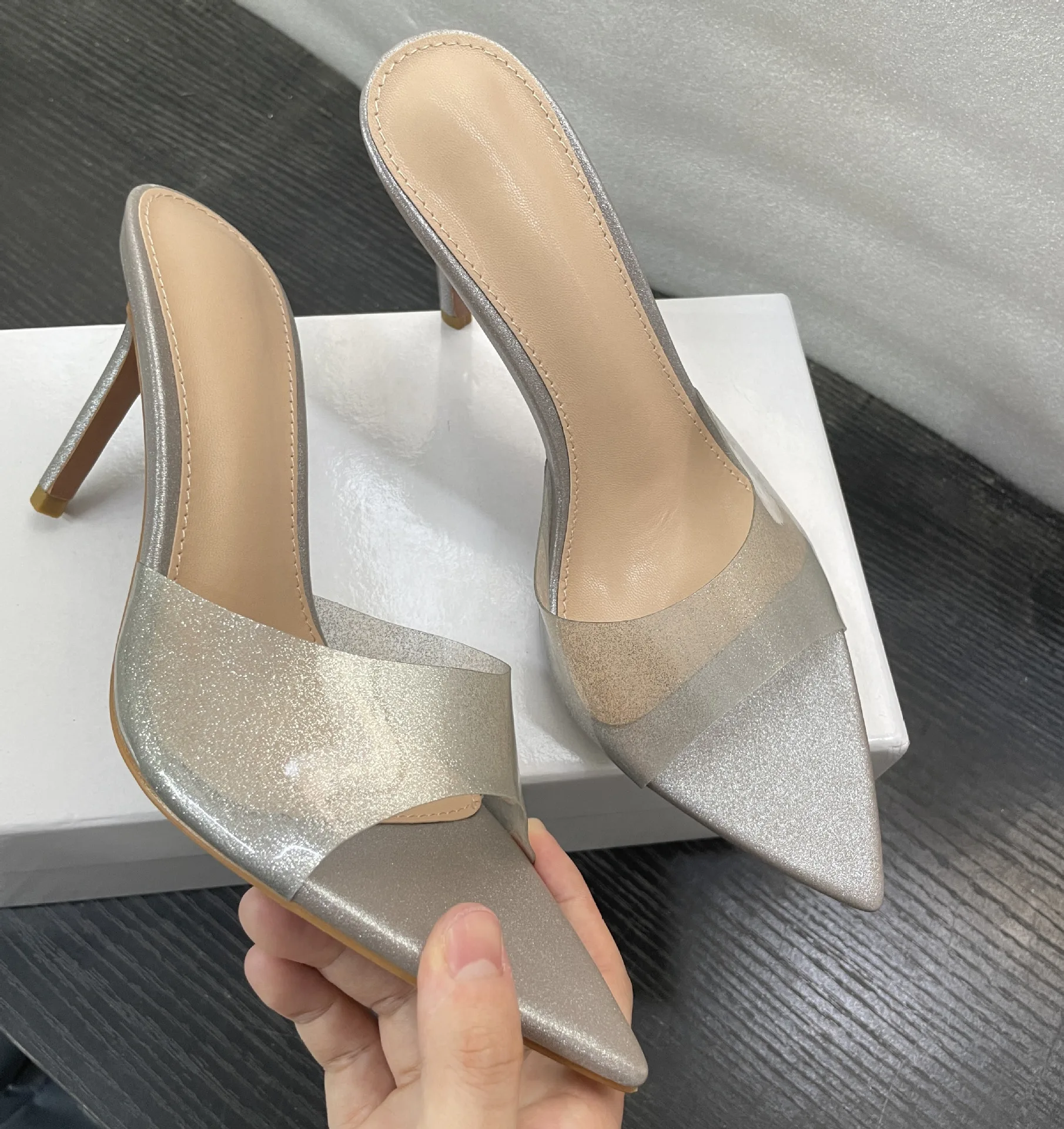 Custom Women Clear Transparent PVC Summer Sandals Sexy Lady Slipper Stiletto Pointed Toe Crystal Upper Slipper Sandals
