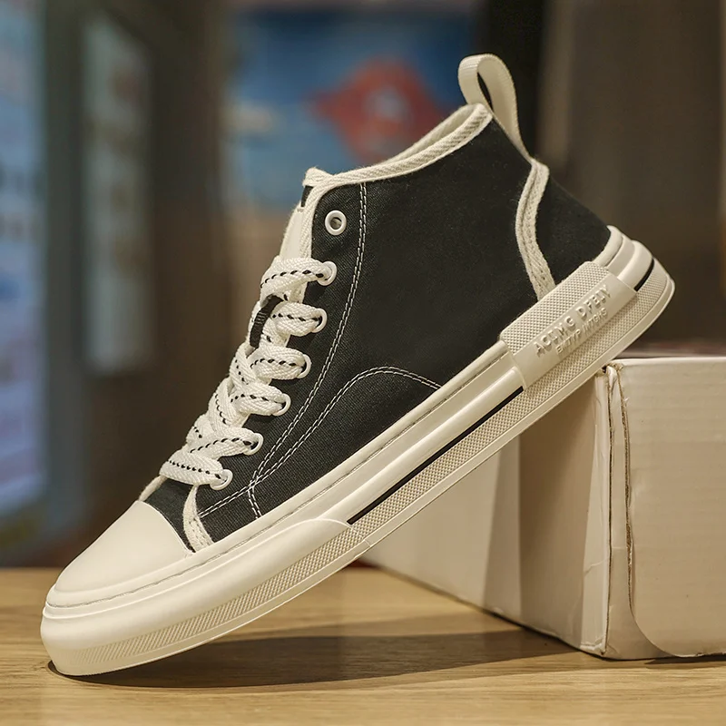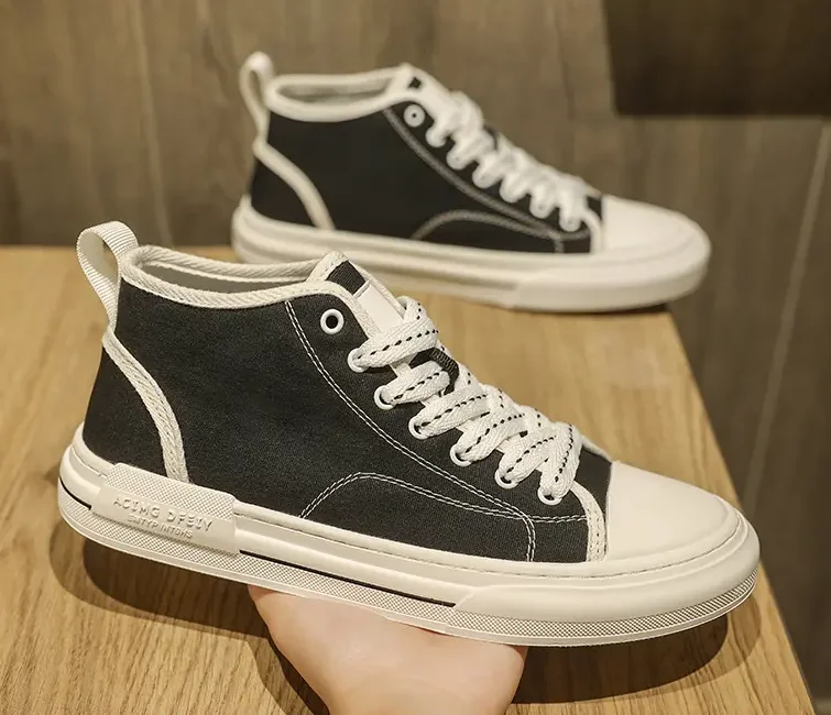 Factory Wholesale High Top Men's Fashion Trend Canvas Shoes Casual Walking Style Shoes High Quality Student Campus Sneakers