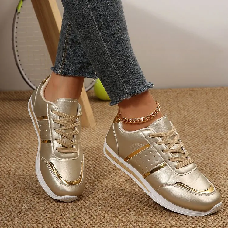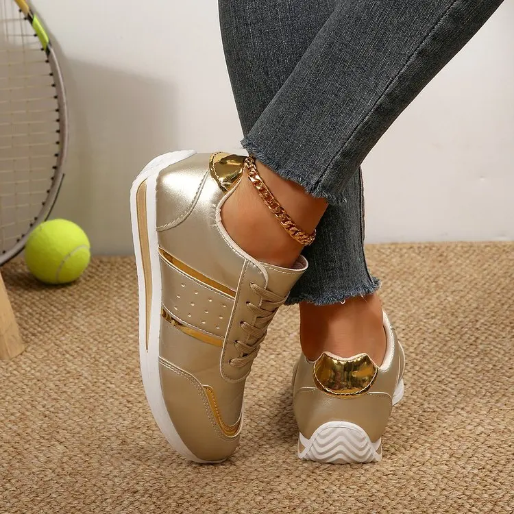 Custom Design Plus Size Women Fashion PU Leather Sport Shoes Girl Casual Sneakers Ladies White Black Walking Style Chunky Shoes