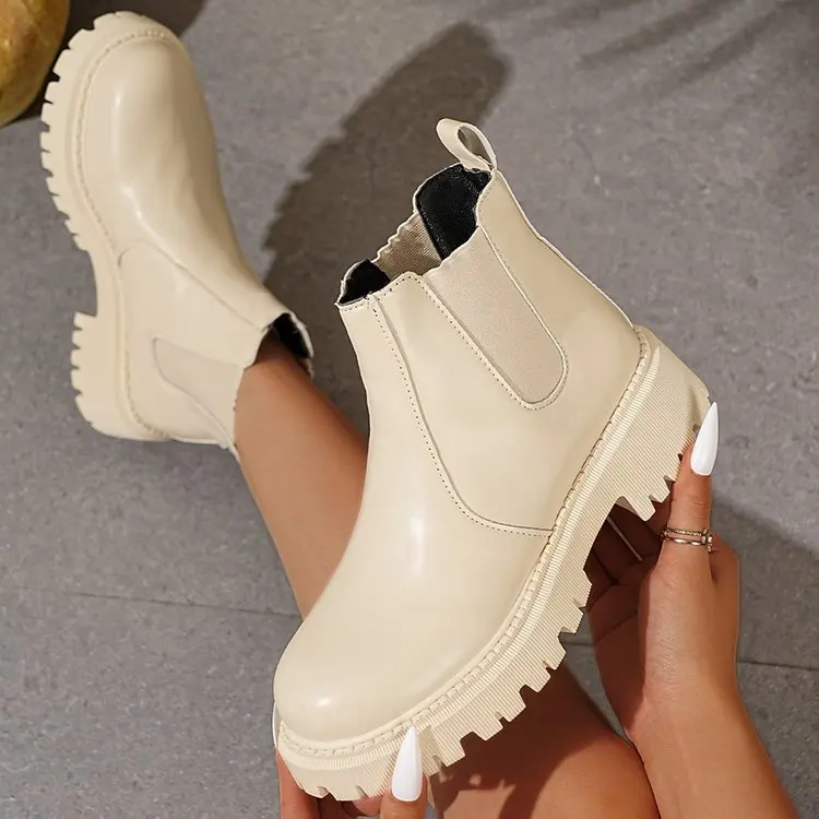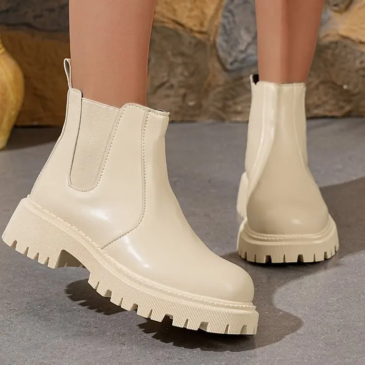 New Spring Autumn Western Women's Chunky Heel Fashion Walking Style Boots Plus Size Chelsea Ankle Boots