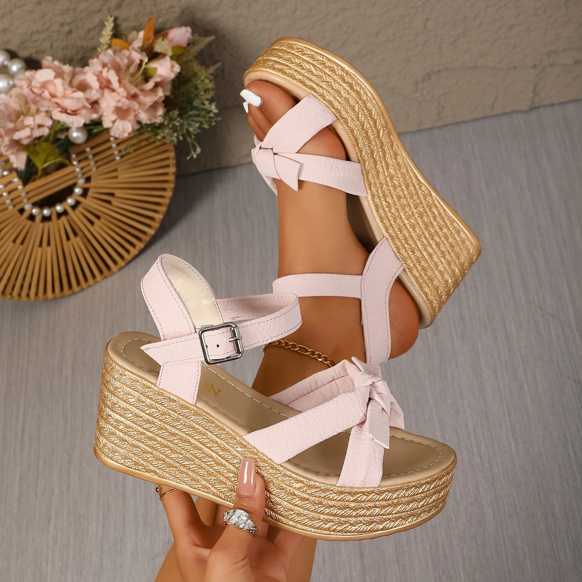 Women's White Platform Wedge Sandals with Buckle Strap Trendy Summer Footwear for Casual Wear