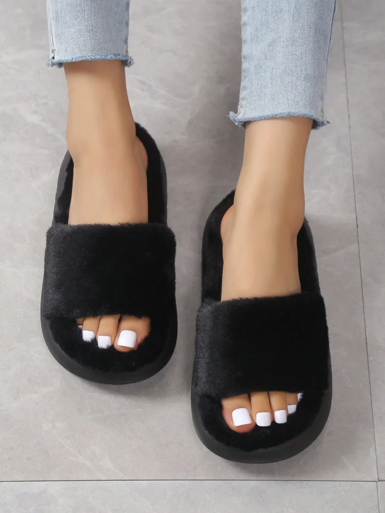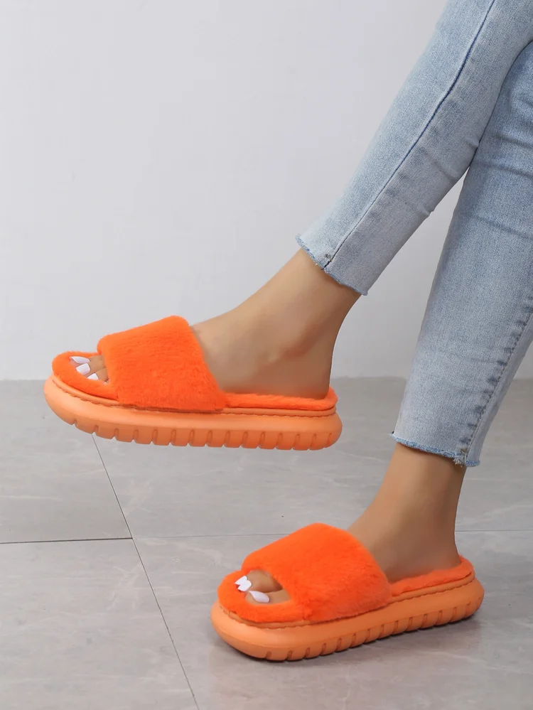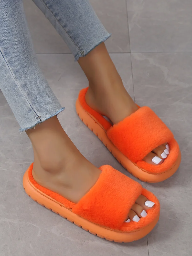 Promotion Candy Color Bedroom Furry Slippers Women's Fashion Warm Slides Mixed Colors Home Soft Massage Sole Slides Slipper