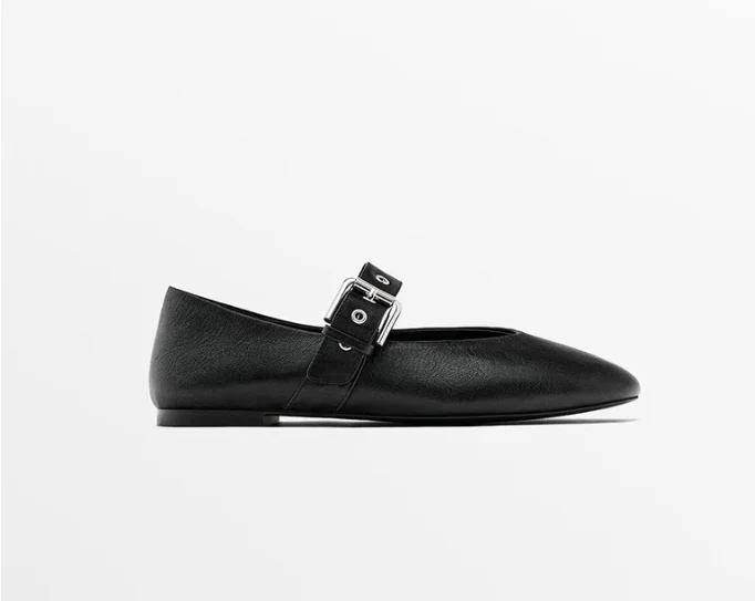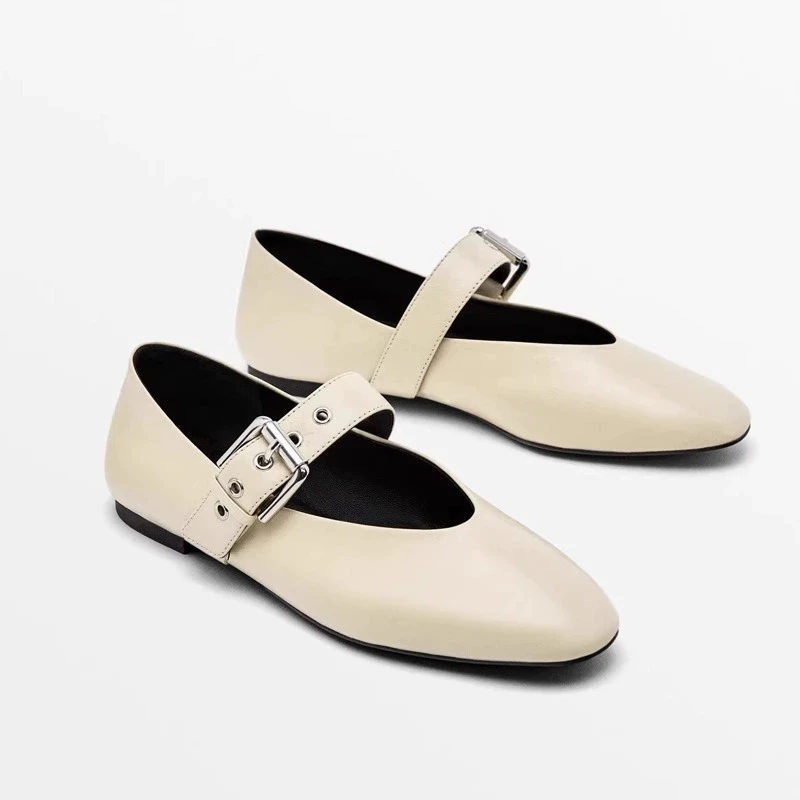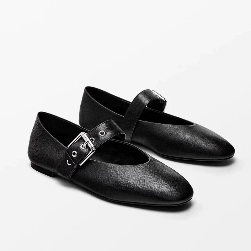 Custom Logo New Fashion Black Mary and Jane Office Leather Shoes