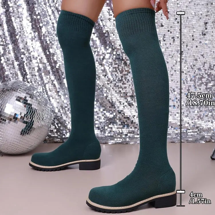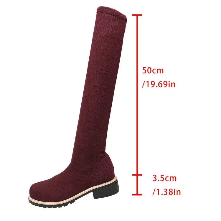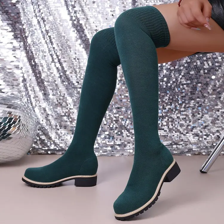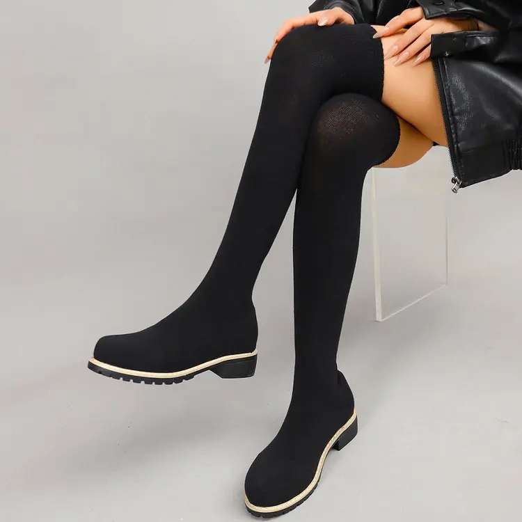 Fashion Trend Fall Winter Elastic Fabric Boot Large Size Flying Knit Thigh High Boots for Women Over-the-Knee for Autumn