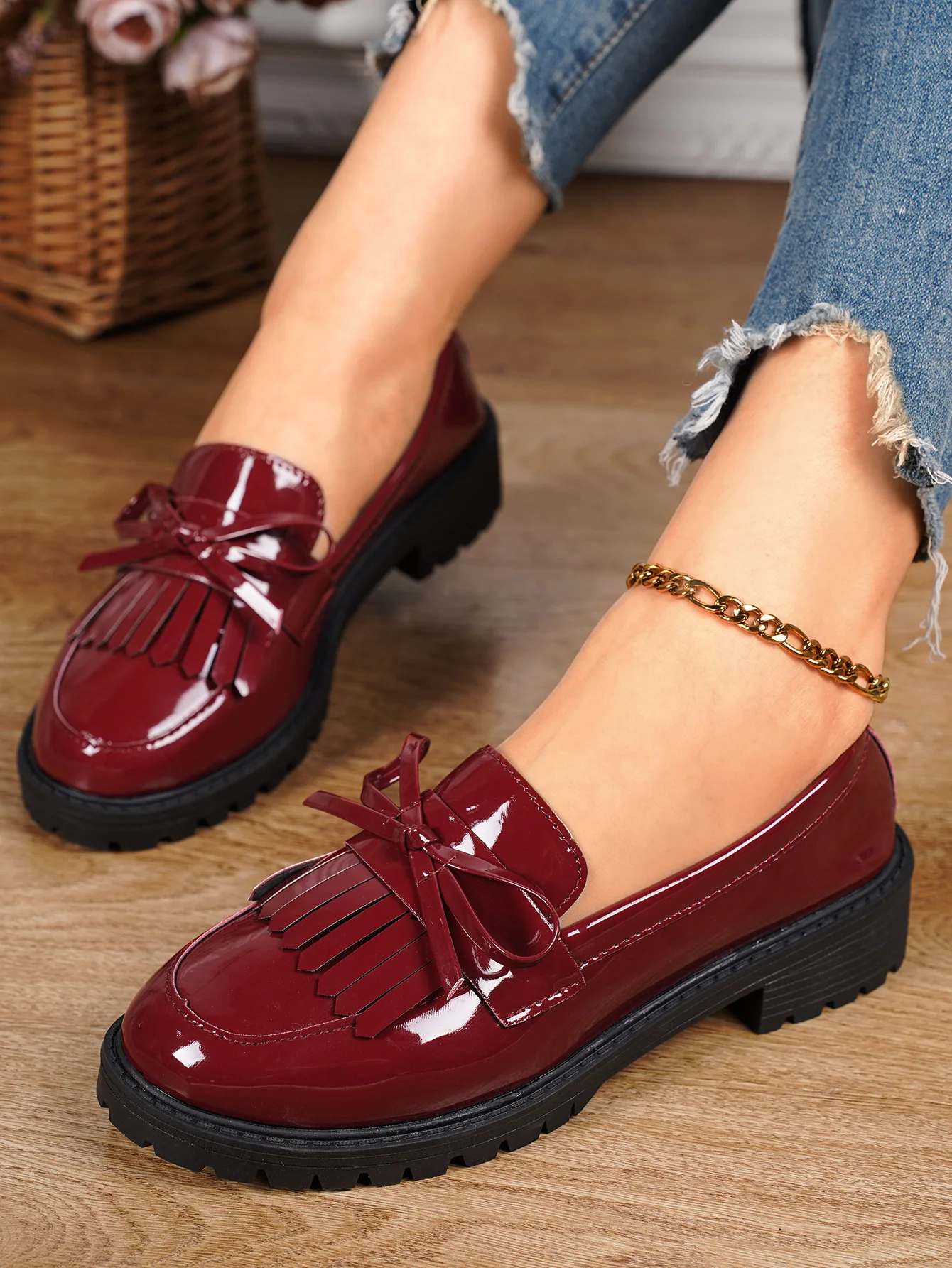 New Spring Fall Women's Patent Shiny Business Dress Shoes Girl Black Platform Tassels Loafer Shoes