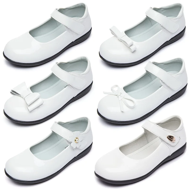 Wholesale Princess White Leather Shoes for Girls Shoes Fashion Bow Students School Dress Small Leather Shoes