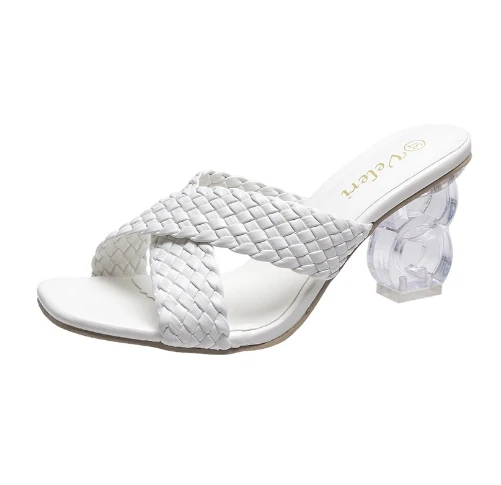Summer 2026 New Style Woven Cross-strip Crystal Square-toe Women's Heeled Sandals