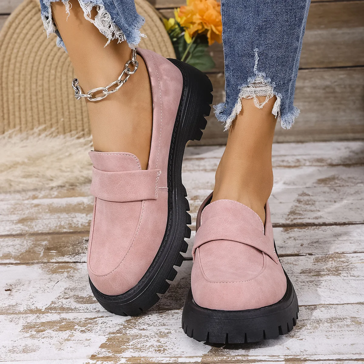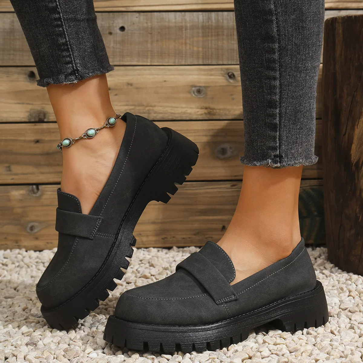 Fashion Classic Low-top Black Women's Lightweight Pu Leather Round Head Non-slip Walking Style Women's Casual Shoes