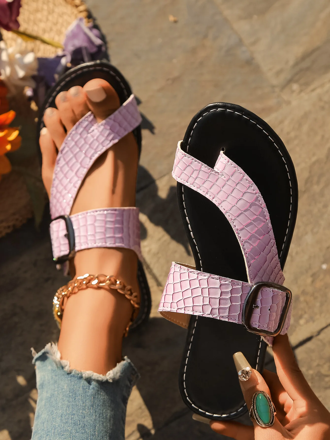 Custom logo Summer New Women's Flat Shoes Fashion Beach Sandals Buckle Flip-flops Sandals