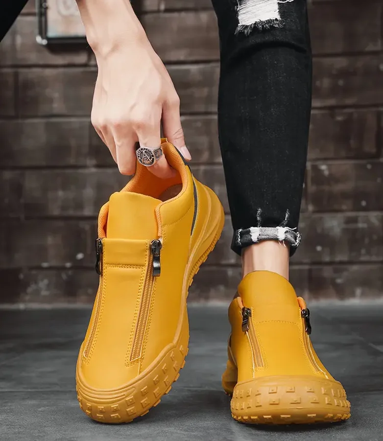 Custom Logo Walking Style Shoes Fashion Breathable Durable Work Shoes Casual Double Zipper Men Sneaker Shoes for Men
