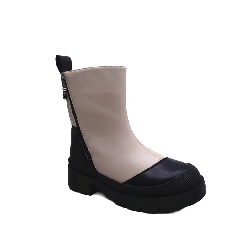 Zip Style Fashion Black+white Boots Anti-slip Rubber Sole Boots