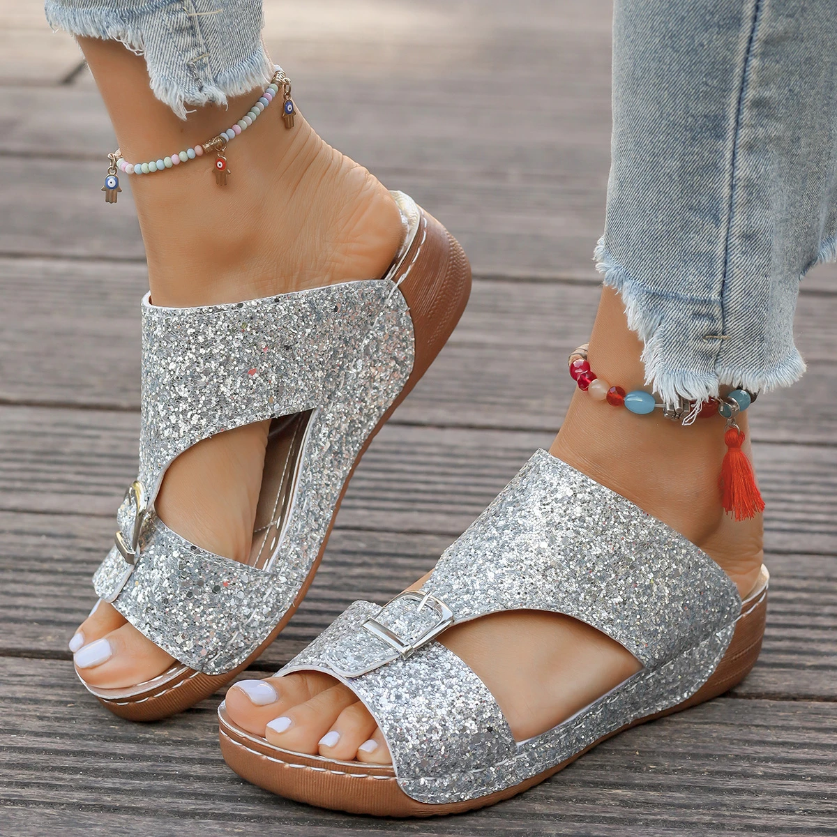 Summer Women's Plus-size Fashion Sandals Silver Flash New Platform Wedge Women Casual Sandals