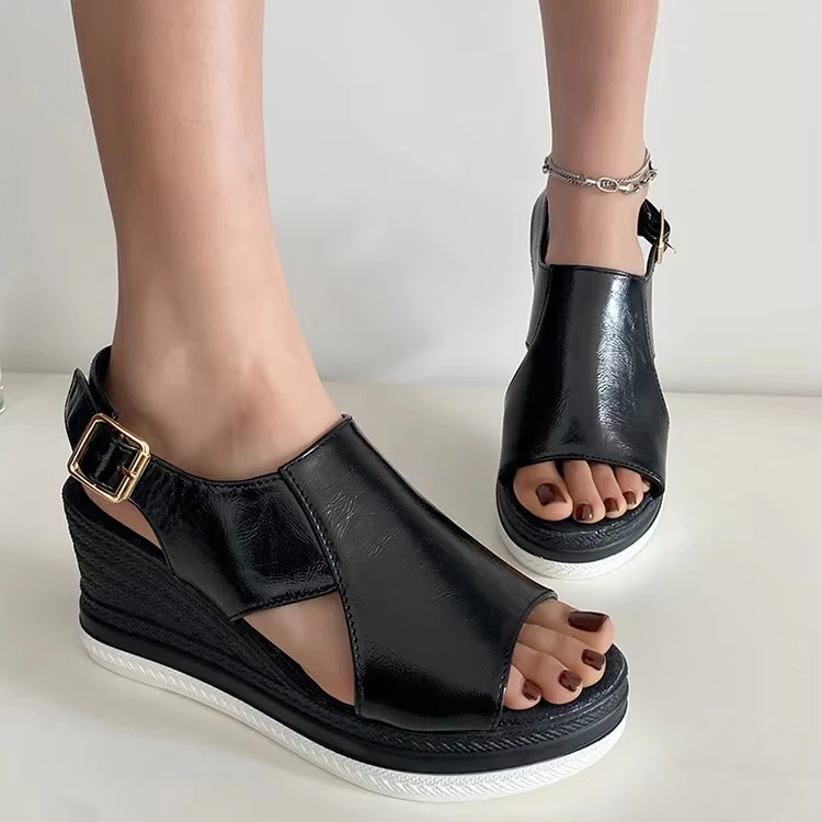 Summer Plus-size Fashion Sandals One-line Buckle Wedge Soled Beach Women Sandals