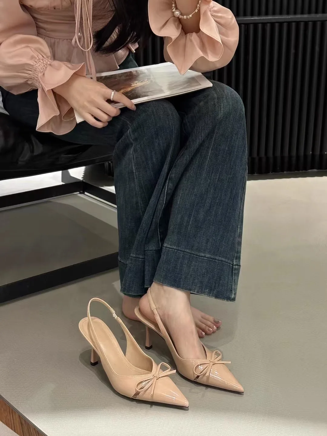 Women's Fashion Bow-top Decorated Solid Color Women's High-heeled Sandals