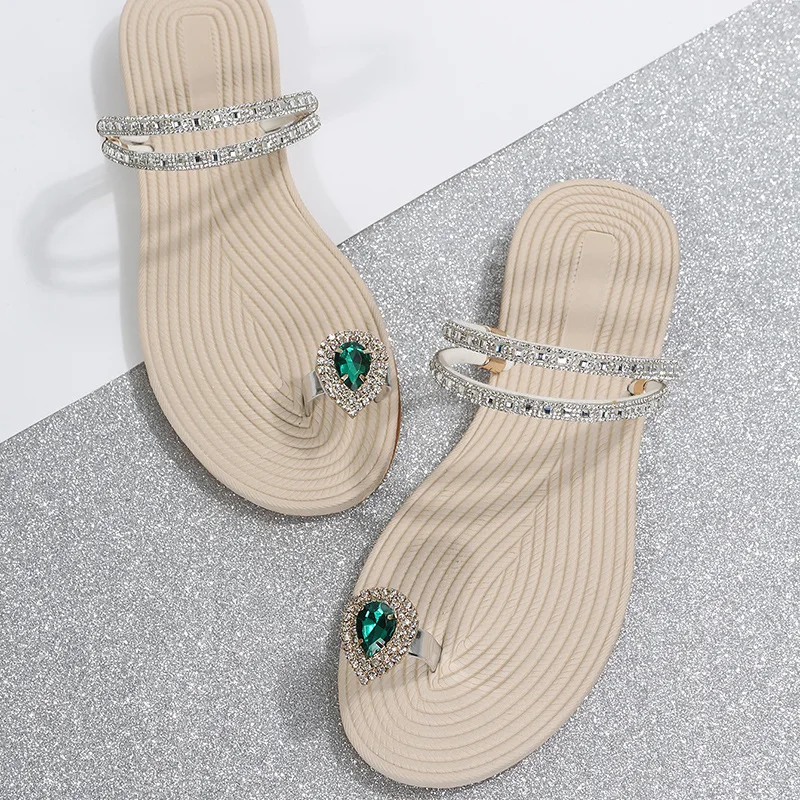 Women's Red Green Diamonds Slipper Sandals Outdoor Summer Crystal Rhinestone Water Proof Flat Slides Sandals
