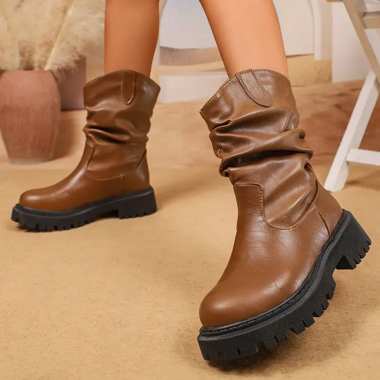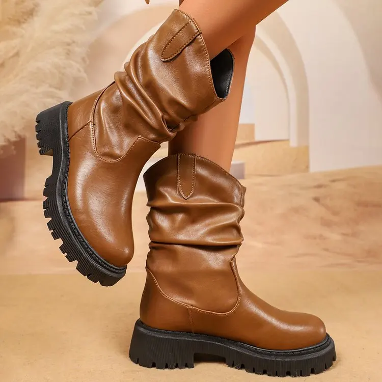 Custom Logo Vintage Style Ladies Tube Western Boots Big Size Cowboy Boots Women Loose Boots