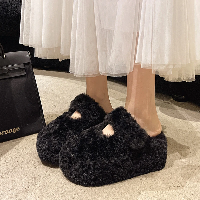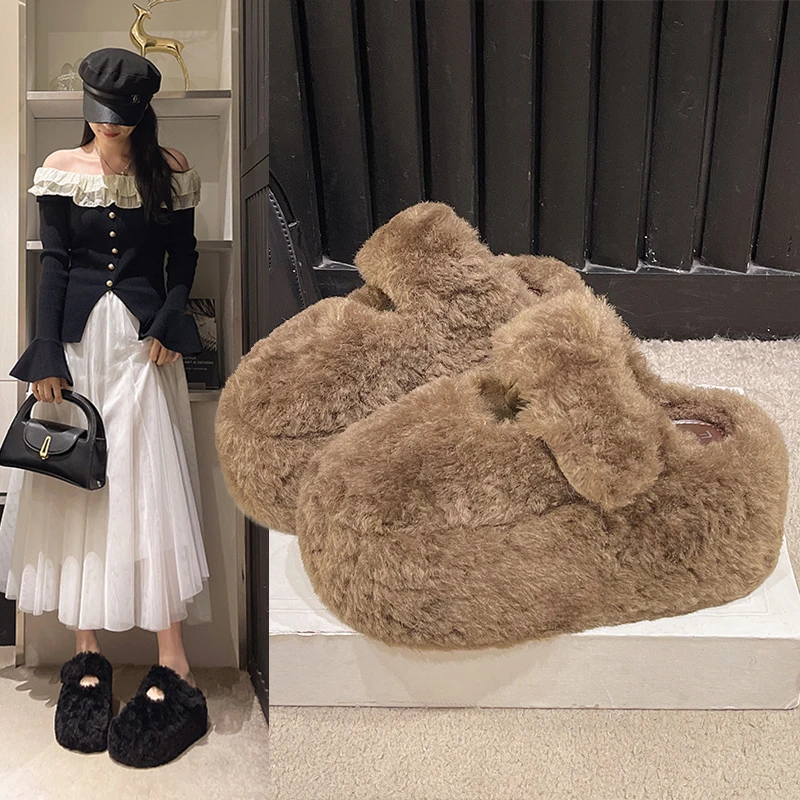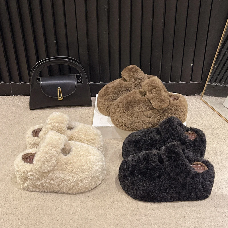 Women's Fluffy Faux Fur Slippers Warm Cozy Plush Indoor Outdoor Slides Fashion Winter Home Shoes