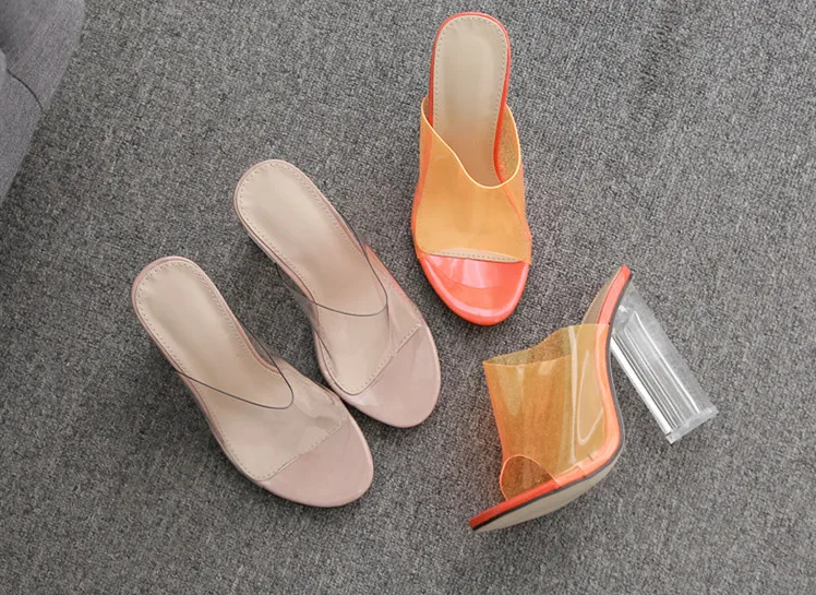 Womens Clear Transparent Crystal Peep Toe Pumps Slingback Shoes High Heel Sexy Sandals
