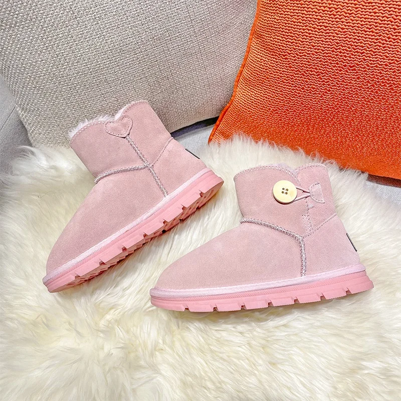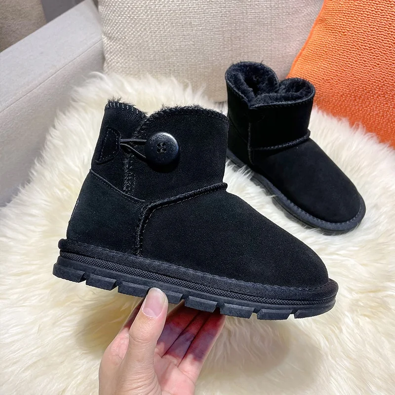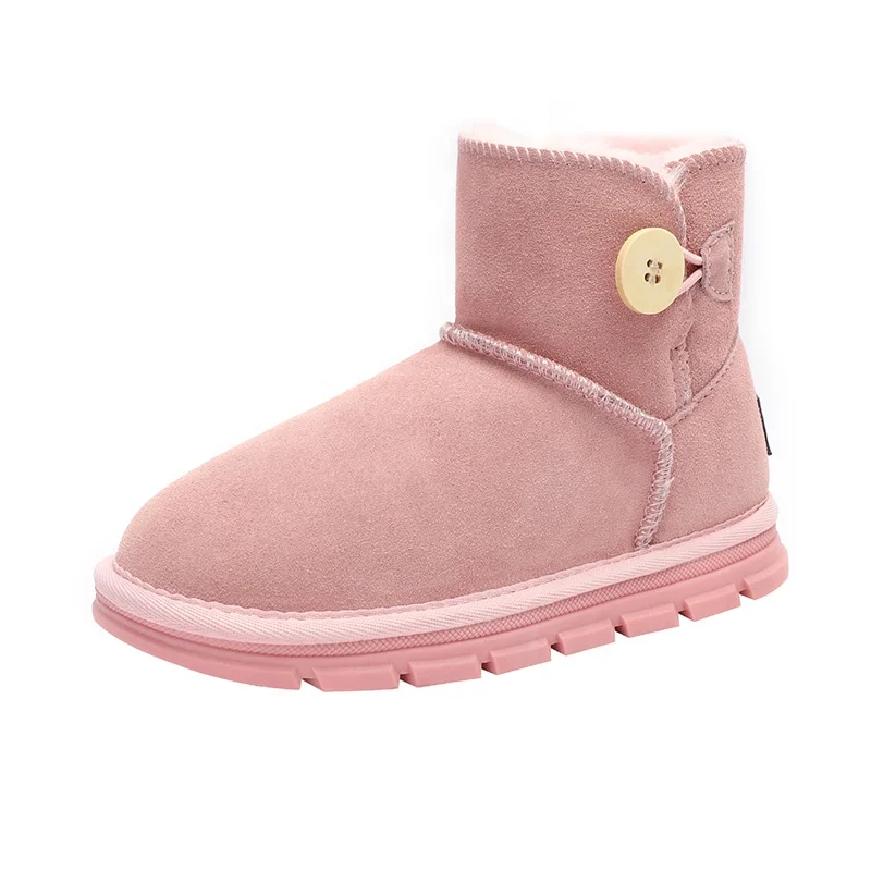 Wholesale Customized High Quality Winter Snowy Furry Ankle Fur Padded Outdoor Shoes Boots for Girls 3 Colors Button Pattern