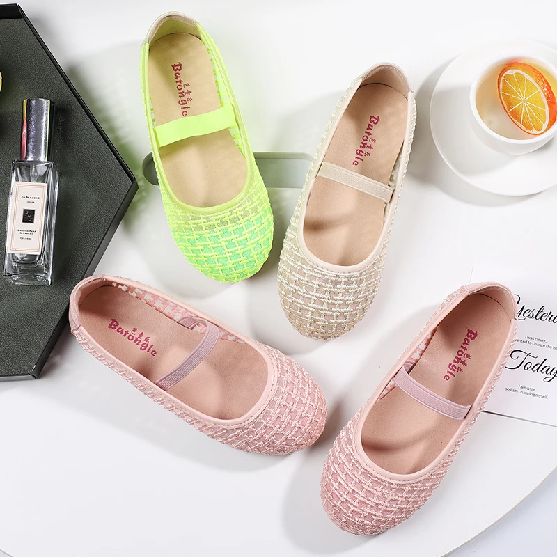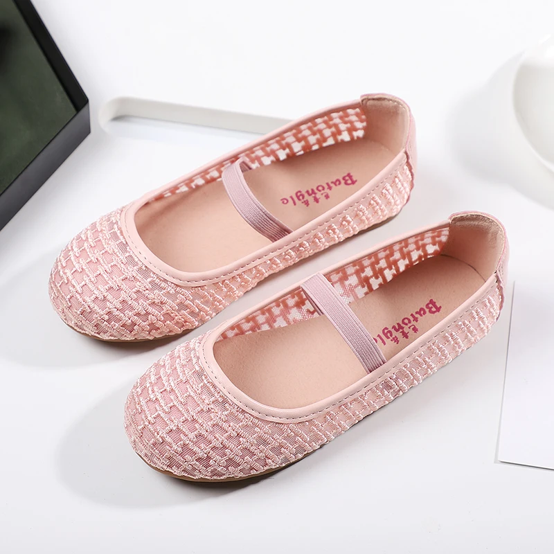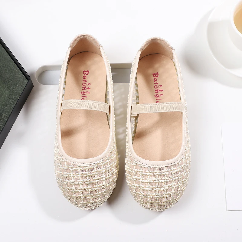 Factory Summer Transparent Mesh Shoes Casual Flat Bottom Middle Big Girl Princess Shoes With Custom Logo