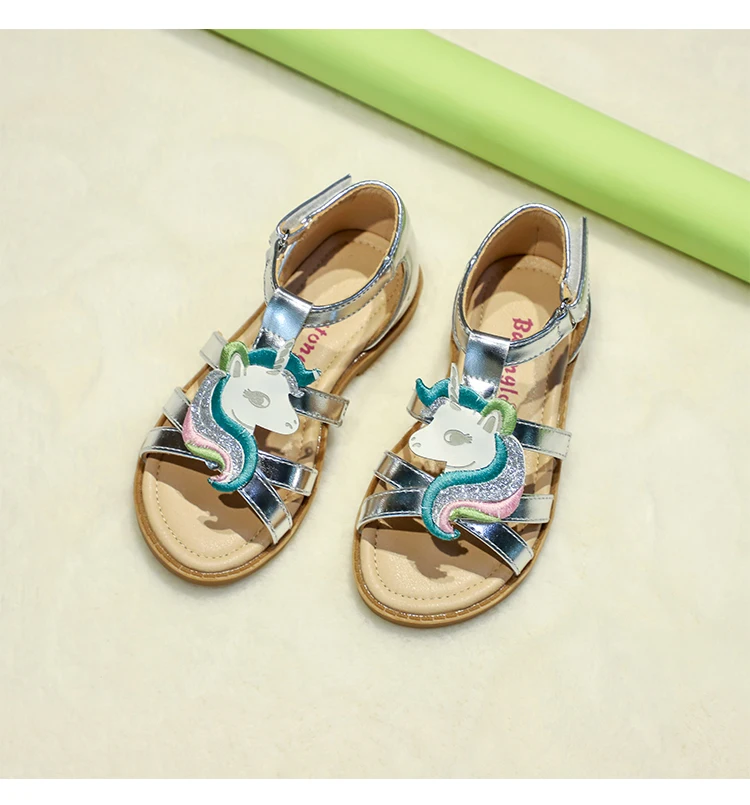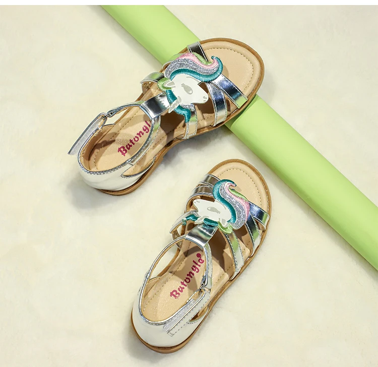 Fashion High End Designer Leather and Glitter Upper Children Summer Little Girls Flat Kids Sandals School Shoes