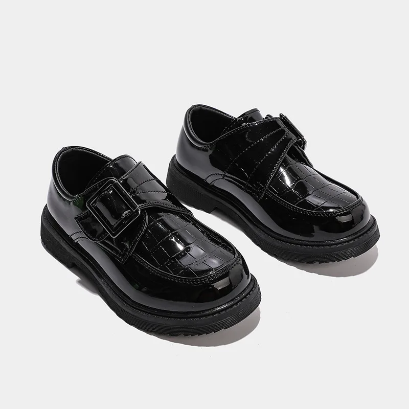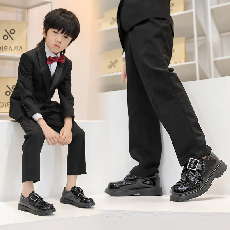 2026 New British Style Black Soft Soled Children Primary School Shoes Autumn Children Leather Shoes Boys
