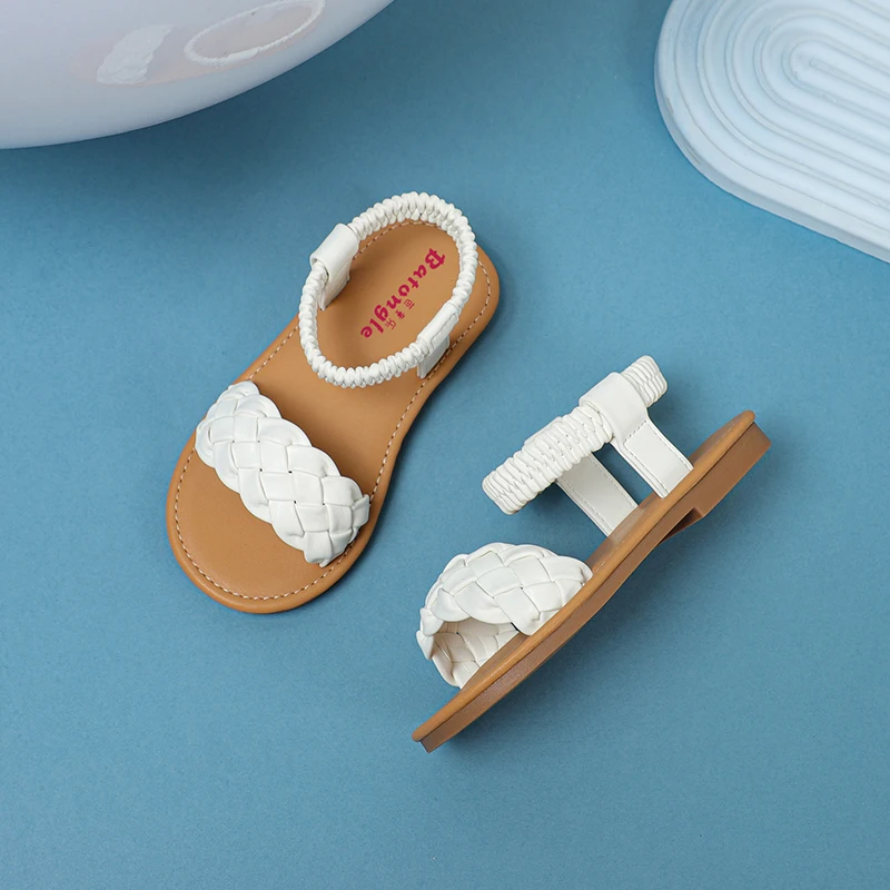 Classic Style Children's Girl Summer Weave Sandal Outdoor School Party Pu Leather Rubber Soft Sole Kids Sandals High Quality New Styles