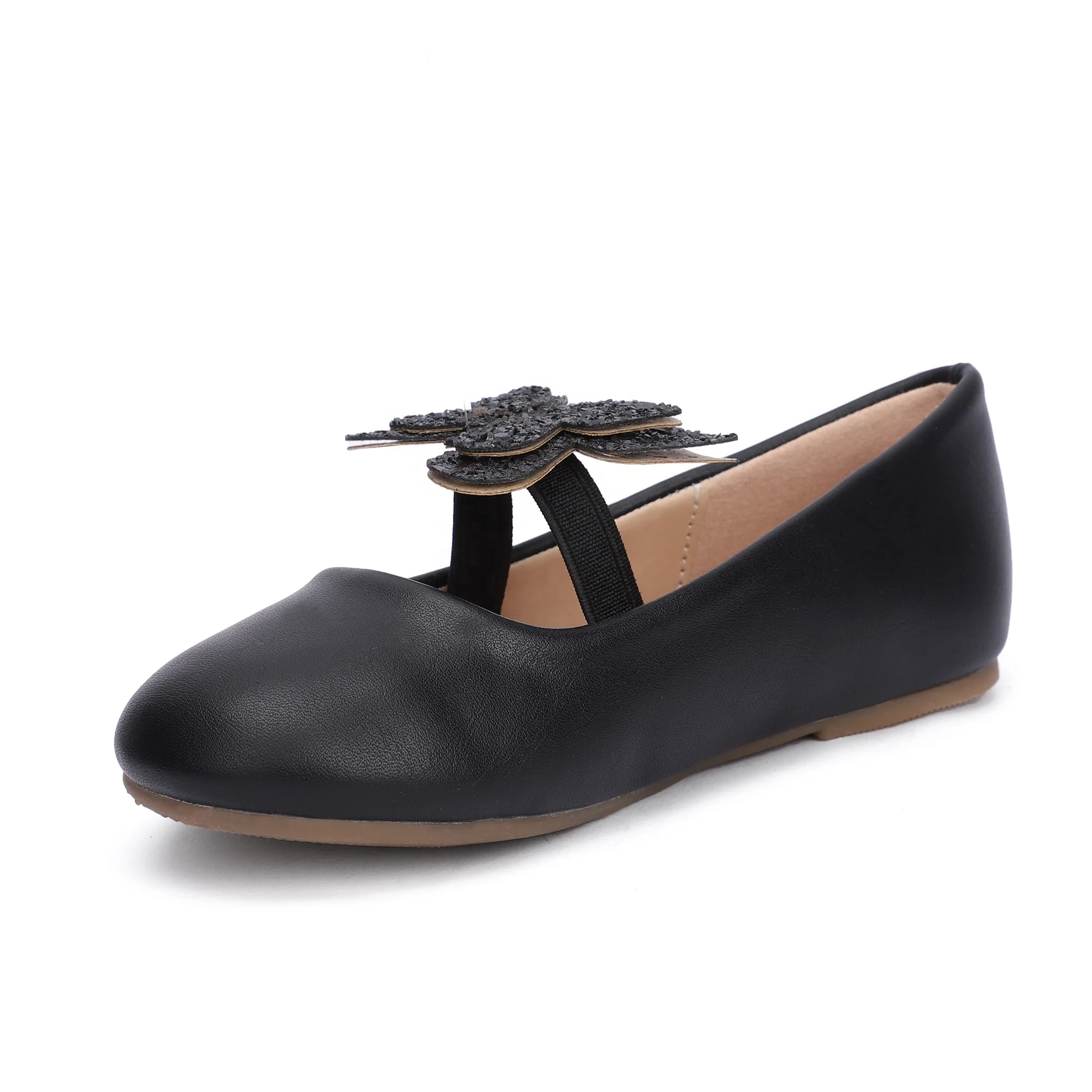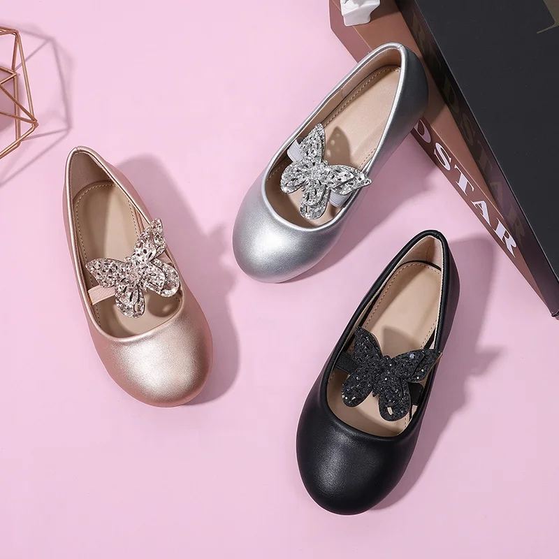 New Styles Solid Color Soft-soled Sequin Bow Knot Non-slip Round Toe Flat Rubber Princess Shoes for Kids Girl