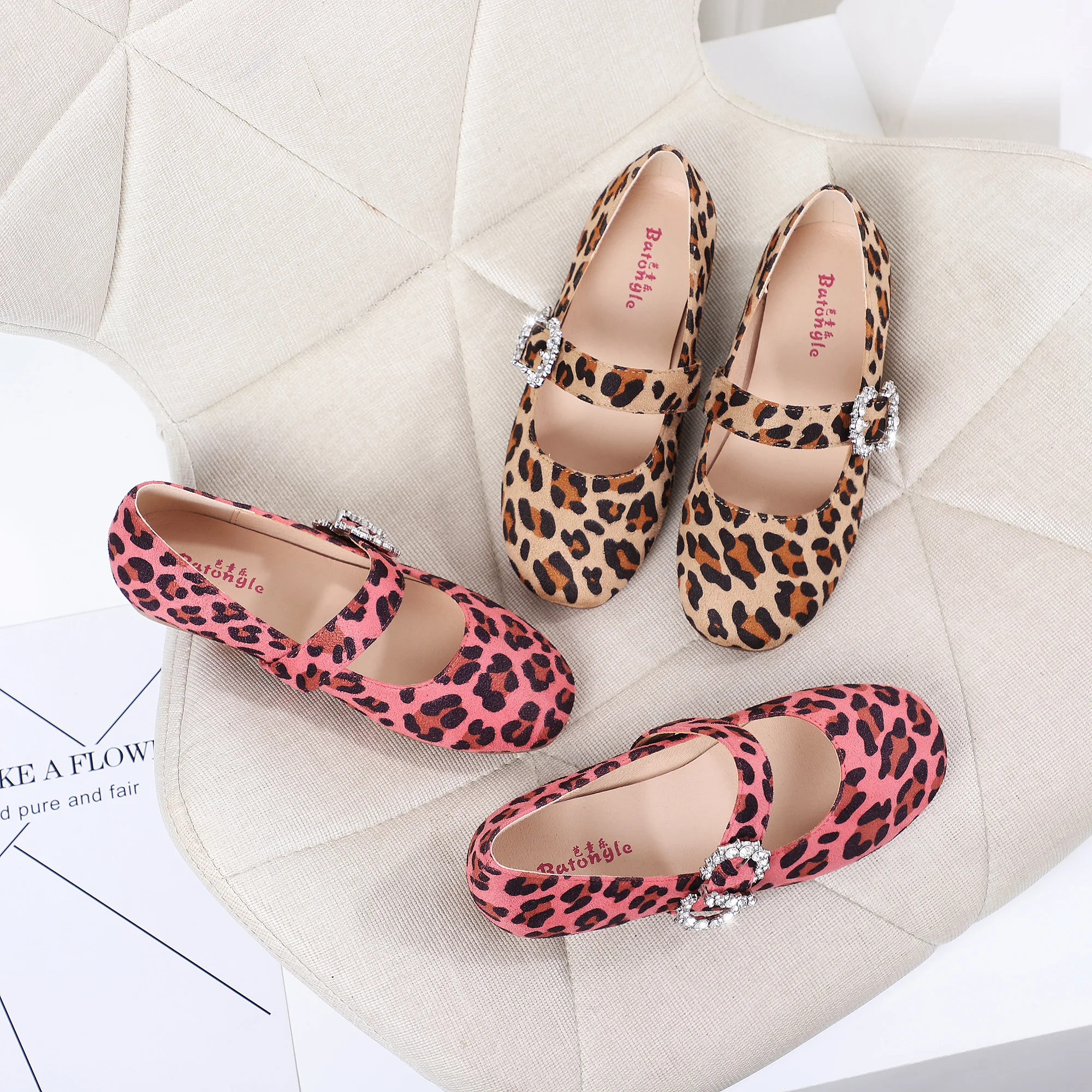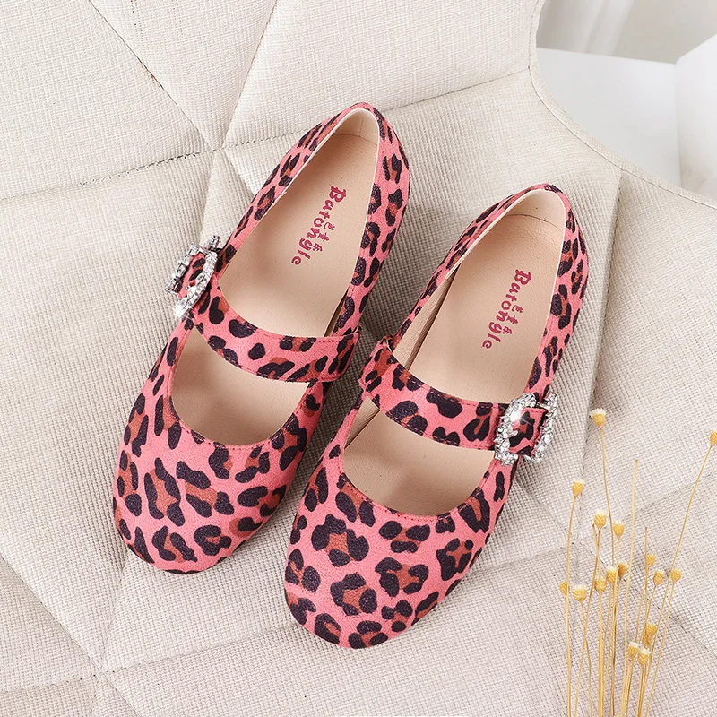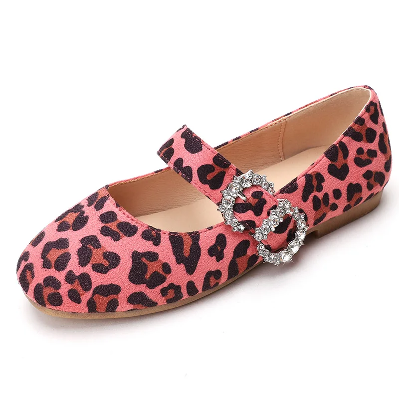 High Quality Summer Fashion Square Leopard Print Diamond-embedded Flat Non-slip Sole Velvet Girl Princess Shoes with Custom logo