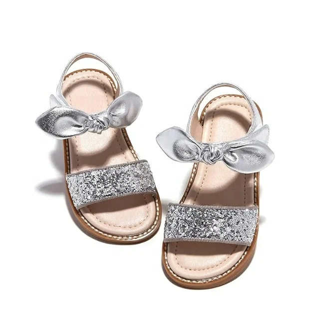 China Wholesale Kids Shoes Girls Sandals Sliver Bow-knot Design With Glitter Sandals Kids Fashion Flat Sandals Girls