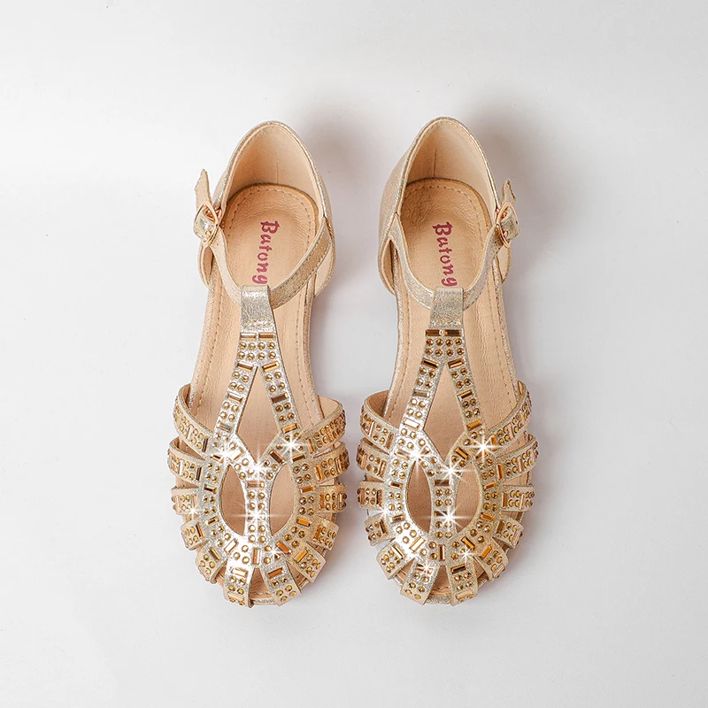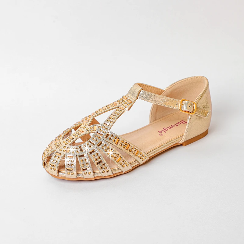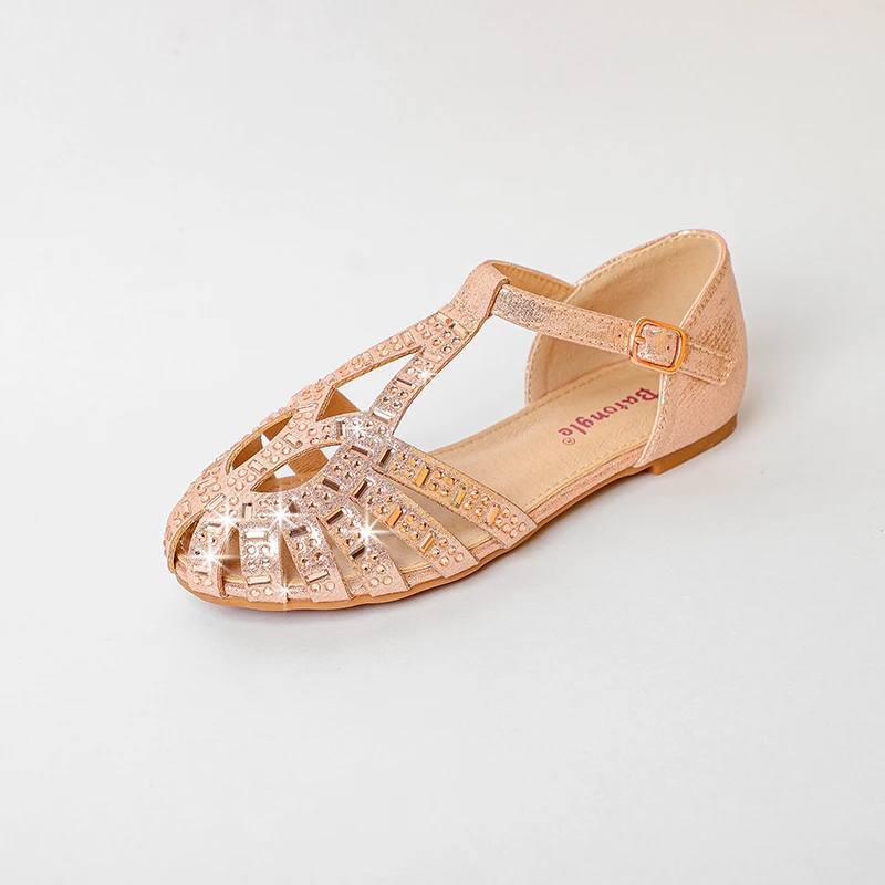 Women's Fashion Trend Summer Peep Toe Light Weight Sandals with Single Strap and Rhinestone