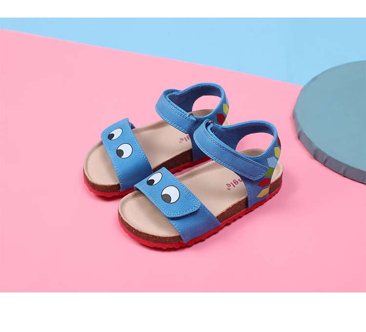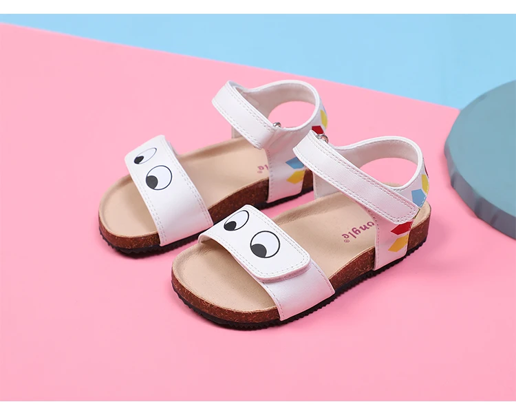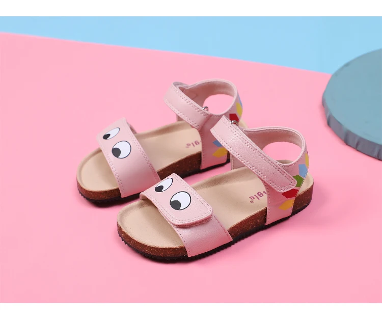 New Summer Buckles Girls' Printed PU Upper Soft Sole Beach Sandals Breathable Flat Sandals for Kids