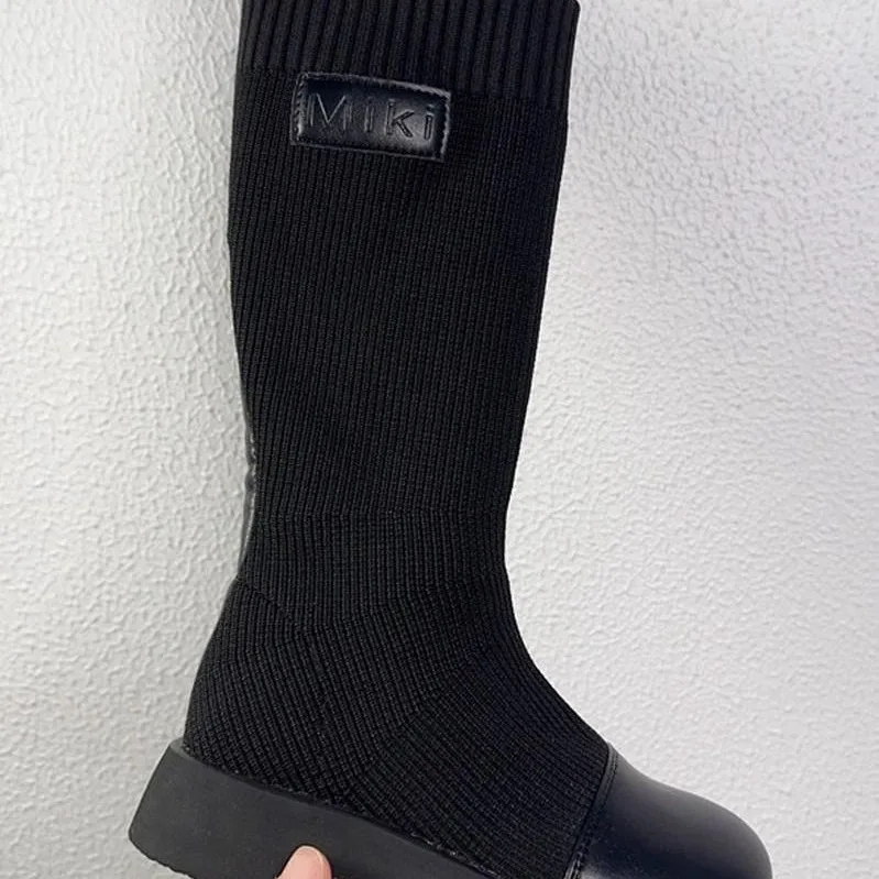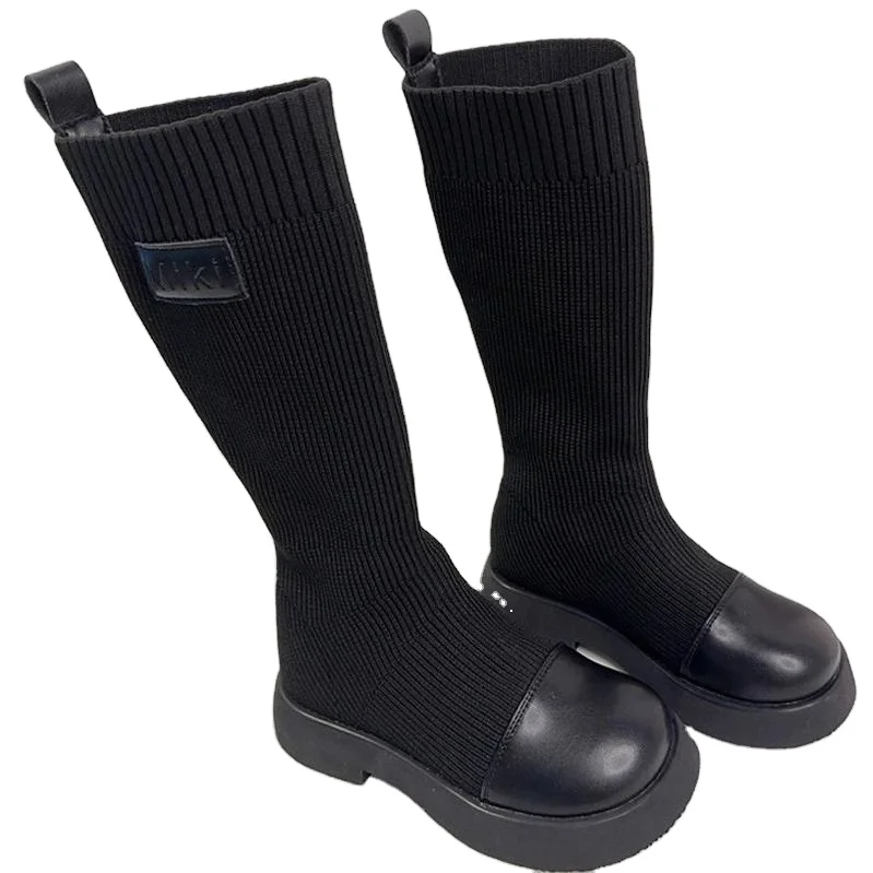 Fashion Girls Short Knee High Boots Kids Rubber Boots Black Winter Boots for Kids