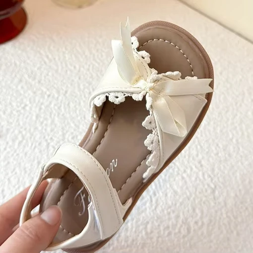 White Lace Princess Sandals Girl Dress Shoes Toddler Girl Sandals Open Toe Little Kid Summer Flats Bow Kids Sandals