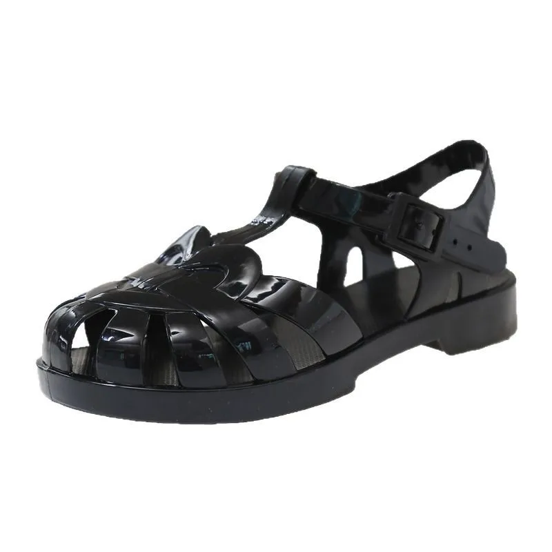 New Design Student Girl Sandals Fashion Jelly Color Bright Soft Soled Shoes Children Summer Hollow Out Beach Shoes