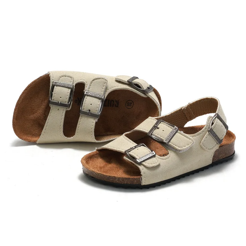 Summer Children Sandals Beach Leather Sliders Slippers Kids Sandals Wholesalers Cork Sole Foot-Bed Sandals Kids