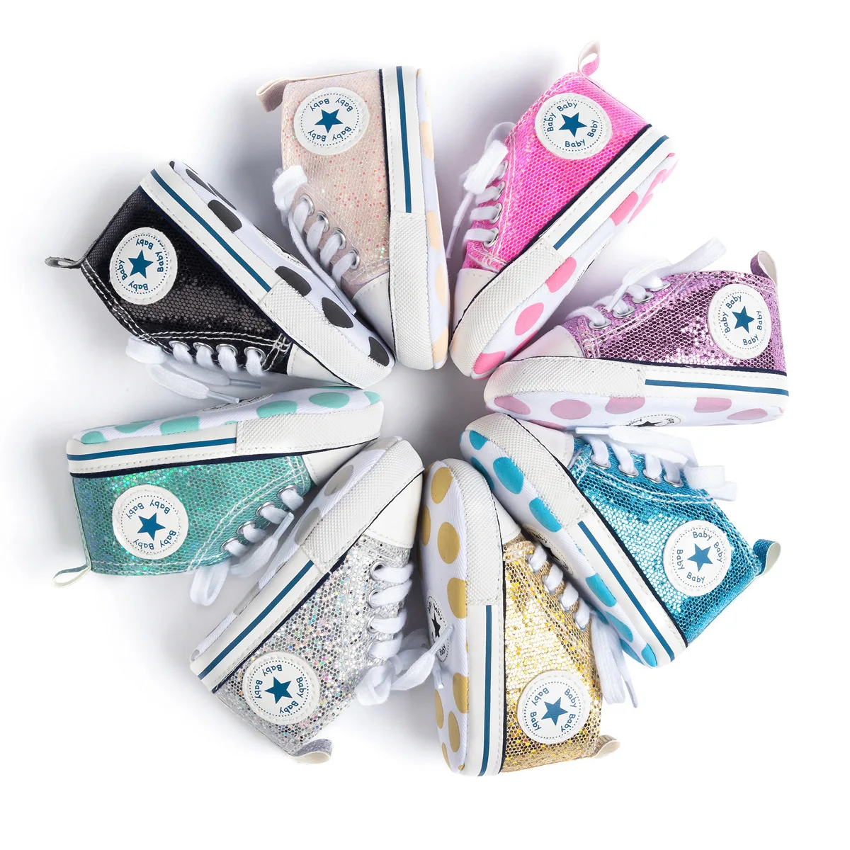 12cm 13cm 11cm Multi Color Sequin Soft Sole Baby Girl Shoe Canvas Baby Shoes Baby Walking Shoes