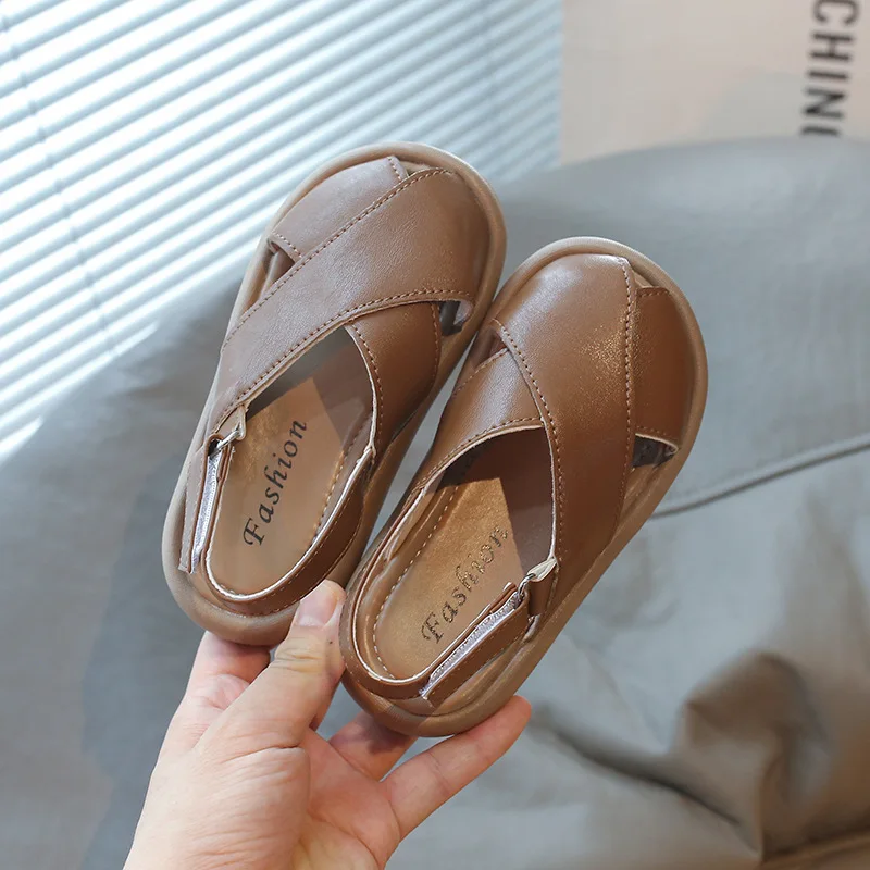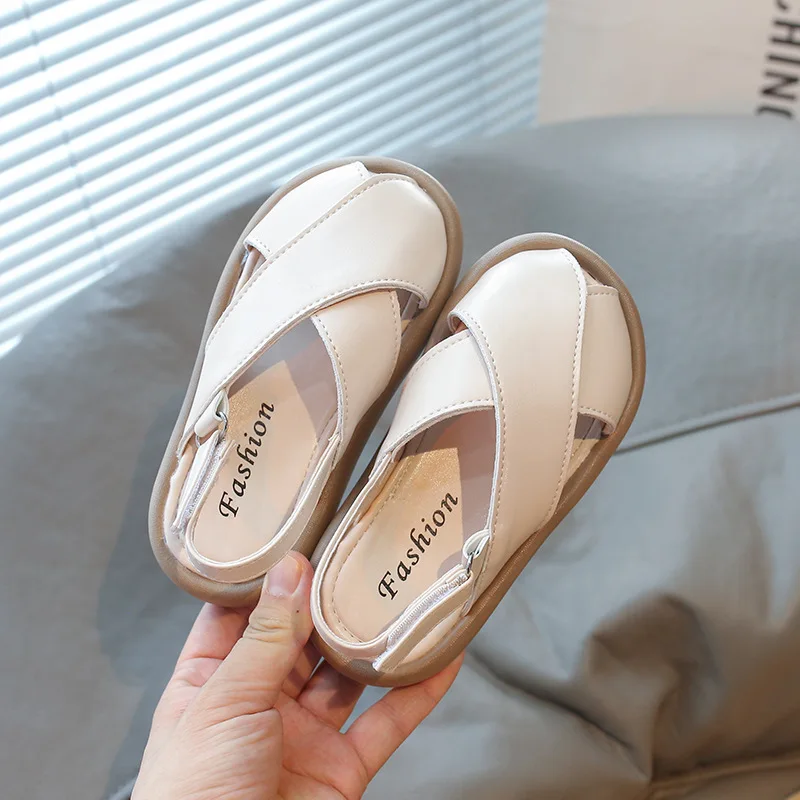 Summer Korean Style Children's Sandals Girls Princess Shoes PU Leather Anti-slip Kids Party Shoes