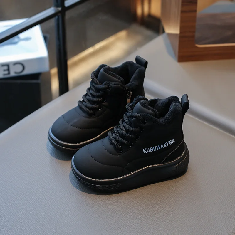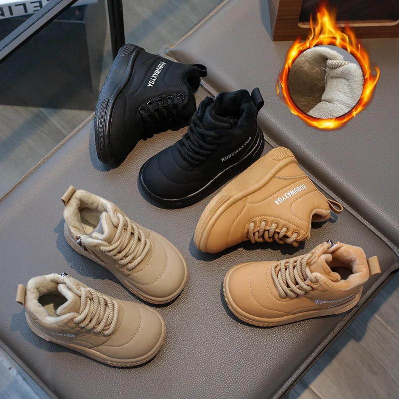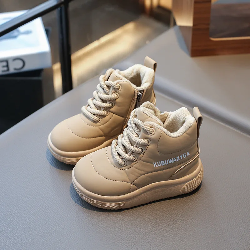 Warm Boys Soft Bottom Girls Short Boots Winter Padded Children's Shoes Khaki Padded Kids Winter Boot